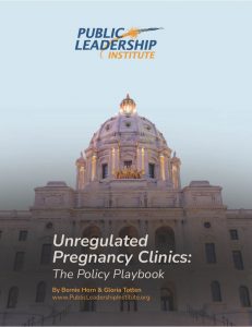 Download a copyThe Public Leadership Institute developed this playbook to serve as a practical resource for policymakers, advocates, and community leaders seeking to hold unregulated pregnancy clinics (UPCs)—also known as crisis pregnancy centers—accountable. These facilities often present themselves as legitimate providers of reproductive health care while operating without basic medical standards and oversight, a lack of financial transparency and accountability, inadequate protections for private information, and deceptive practices intended to discourage people from seeking abortion care.